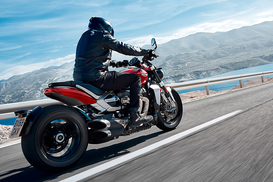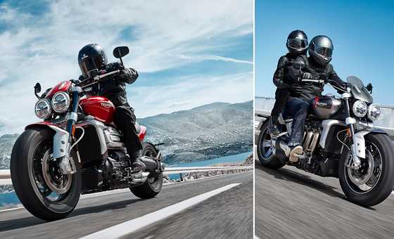 The new Rocket 3 motorcycle is in a class of its own, with truly imposing muscular presence and magnificent style. Combining the highest level of specification and technology with all of Triumph's incredible handling, the Rocket 3 brings a sublime feel and comfort for all-day easy riding.