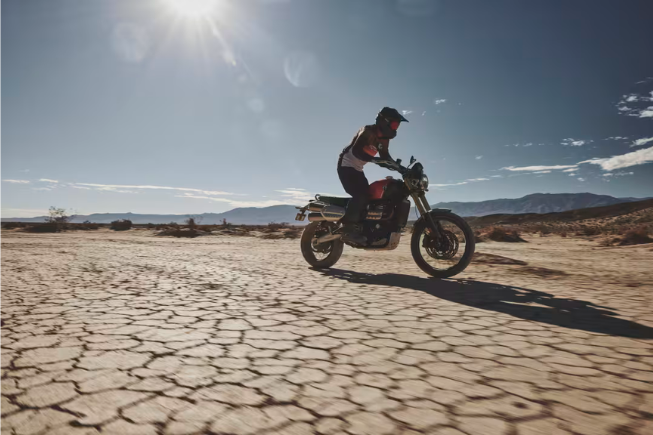 The new Scrambler 400 XC is built to be tough, with spoked wheels, flexible engine performance and modern rider technology.